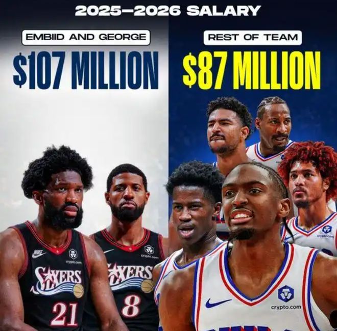 最更关键的是,乔治4年超过2.12亿美元的大合同,跟恩比德两人占了球队将近55%的工资总额,快要成为NBA历史上的最烂合同了。几乎可以肯定的说,没有球队愿意接手乔治,76人如今已经是进退两难了。